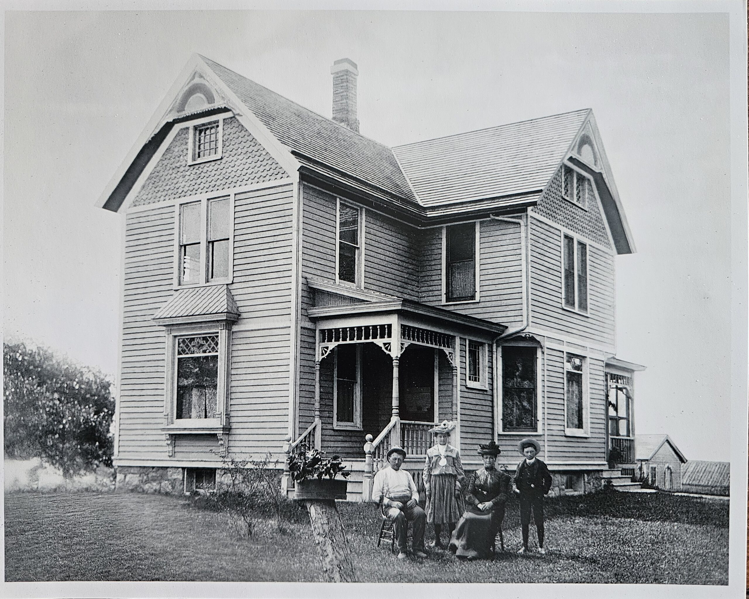 Standing proudly on historic Thompson Road in Bull Valley, Illinois, our farm – originally known as Meadowbrook and lovingly called the “Big House” – has been a place of remarkable lives and enduring beauty since 1892. Herbert and Cora Thompson built this gracious home on their thriving dairy operation, raising their family here through more than sixty-five years of marriage. A 1900 photograph captures them with young Susie and Loren in front of the house.