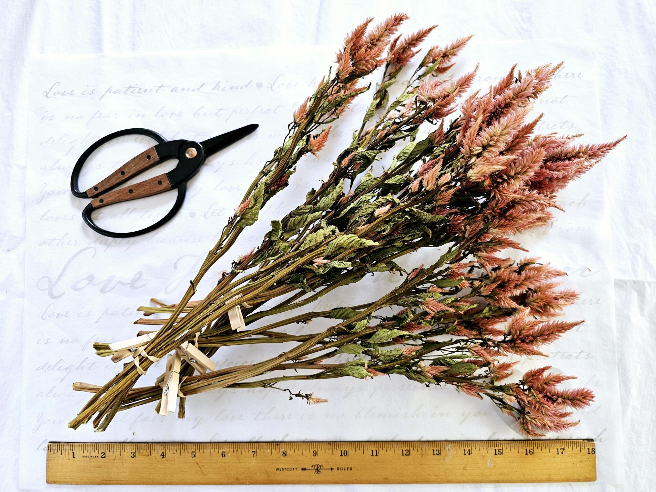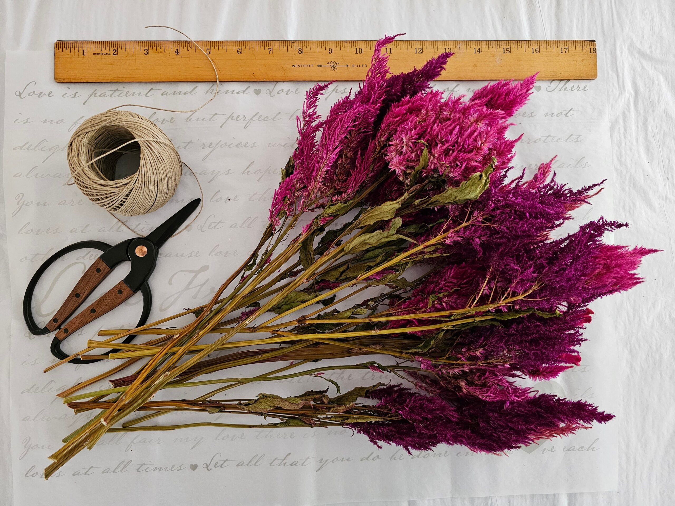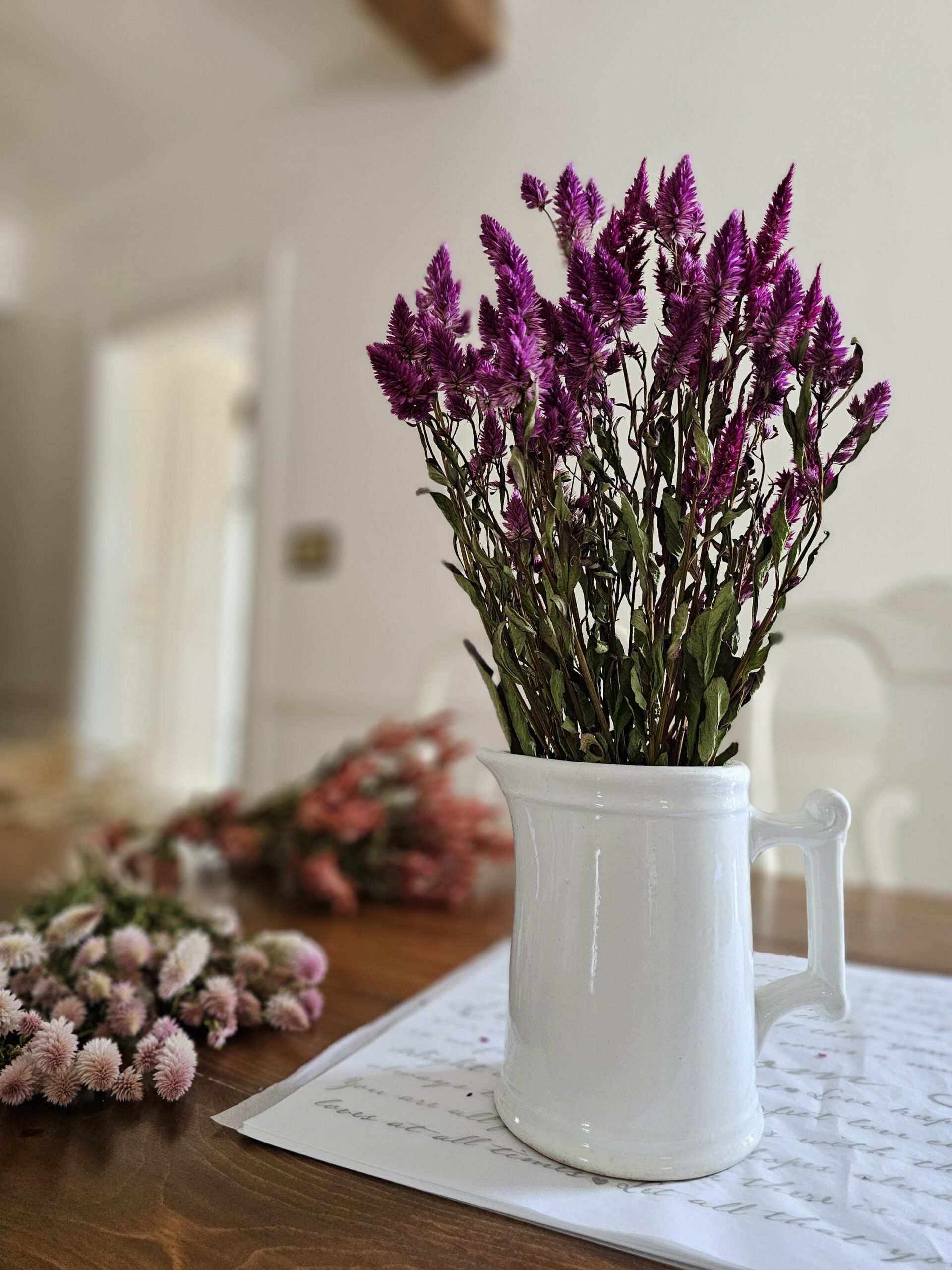 - Pink/Crimson: A mix of fluffy, spiky, and the occasional cockscomb in this bundle. It includes a lovely combination of shapes and textures. We’ve grown these for years and they self-sow, so there’s a wonderful range of colors between individual stems rather than a monochromatic bunch.