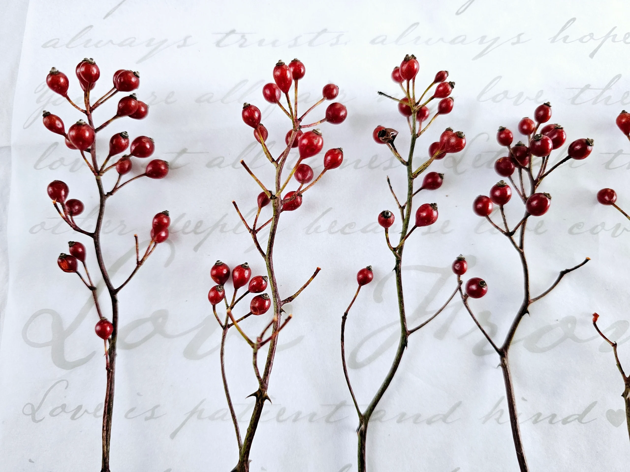 • We also have some large, arching, multibranched stems up to 30″ long (not pictured here) with multiple individual stems each bearing multiple hips. so if you are looking for something more architectural, striking and unusual, this may be it. Please contact us for details and photos. Quantities are limited.