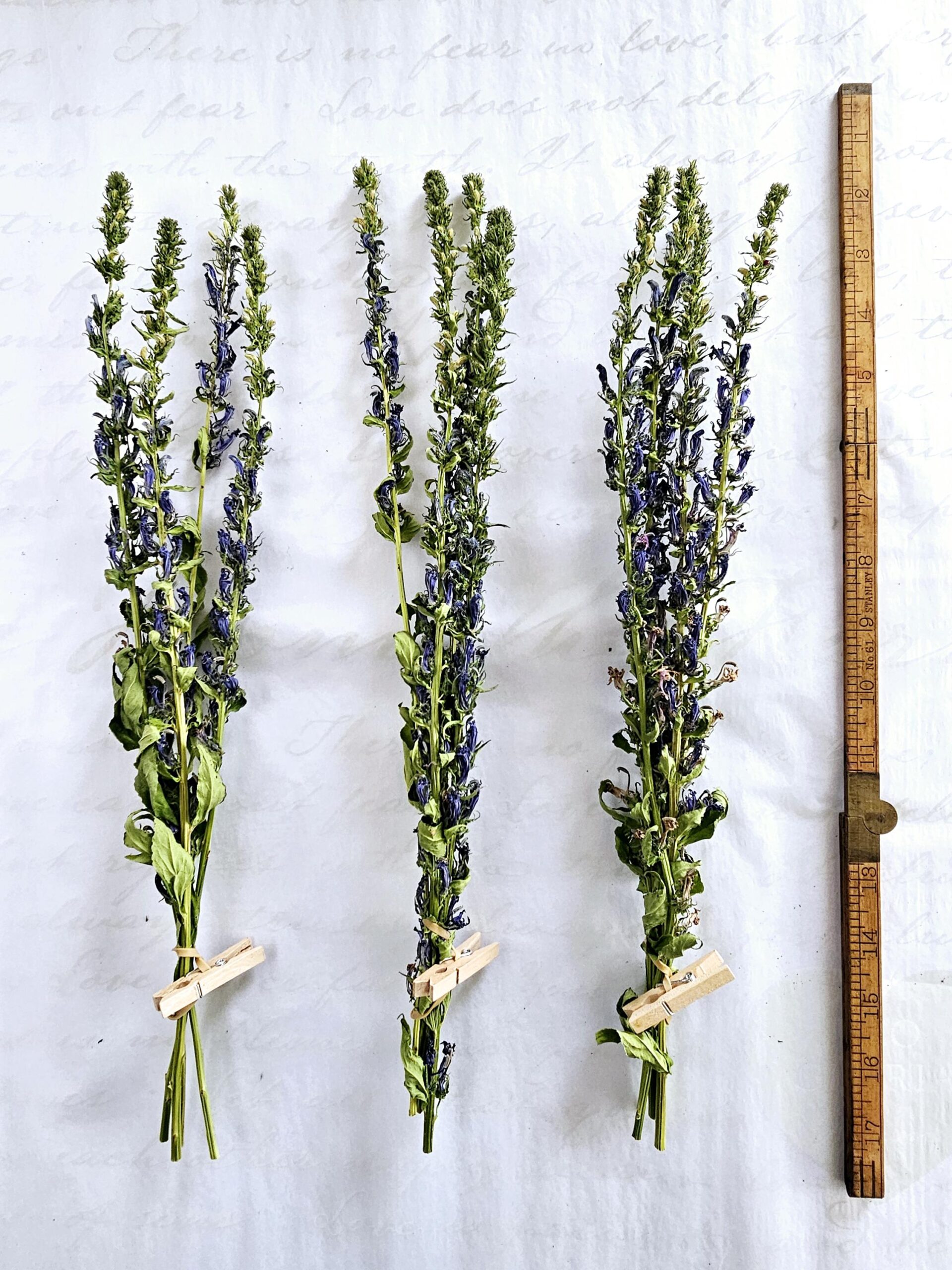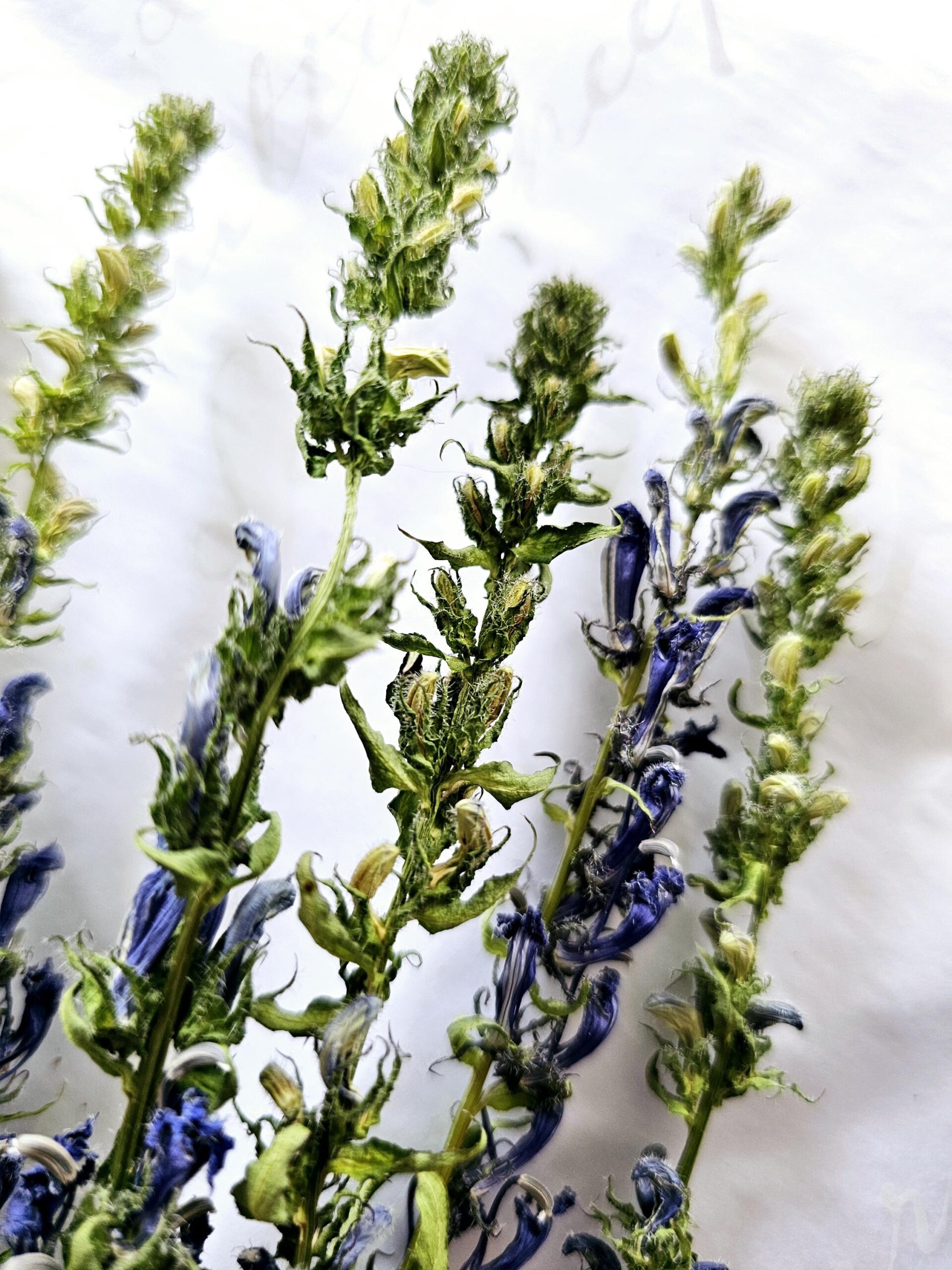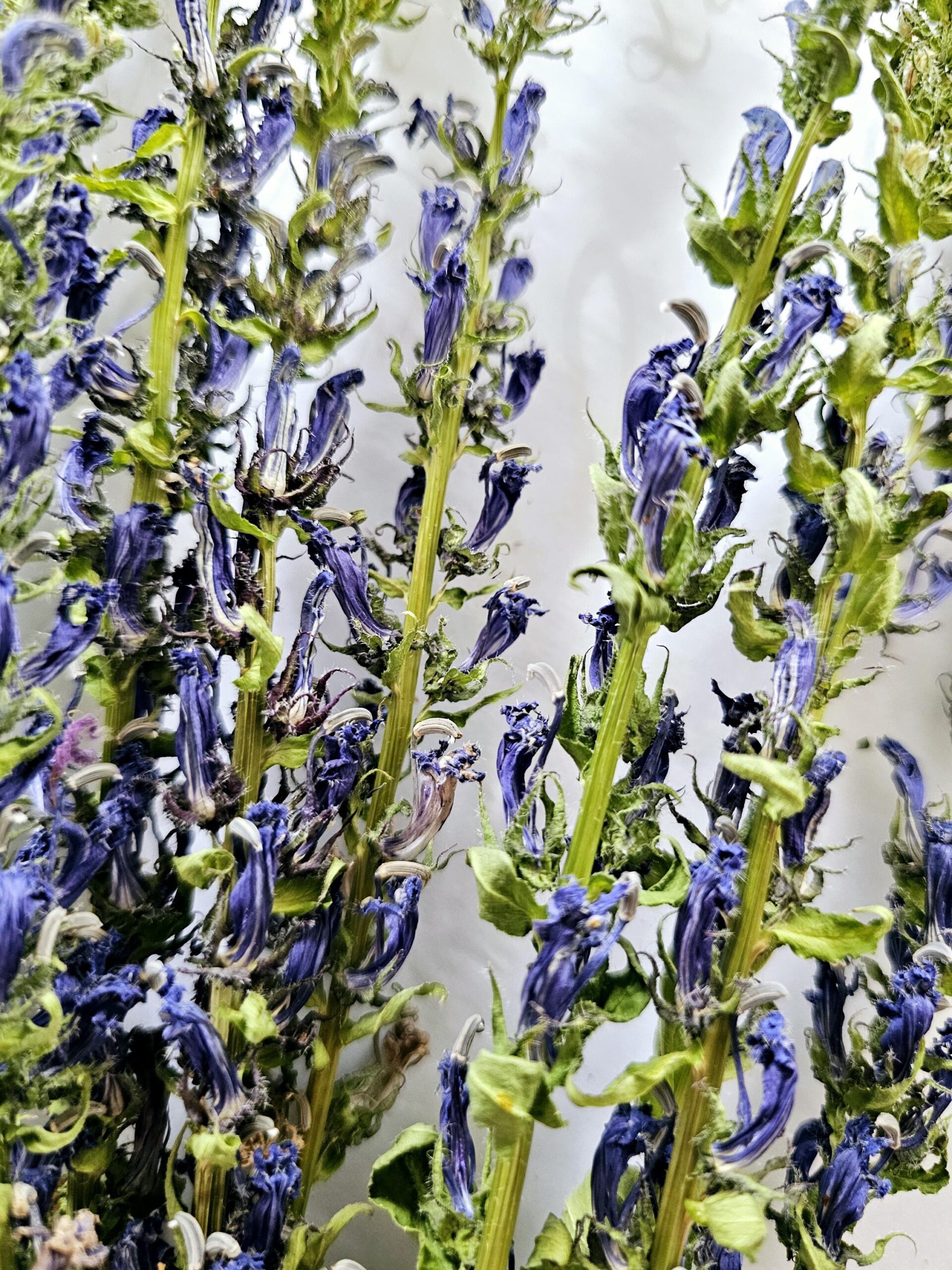 Wildharvested in the peat meadow we are restoring along the seasonal stream on the east side of the farm. Their tall stems, and tubular indigo blooms make a wonderful accent in bouquets, wreaths, or displayed en masse on their own. The individual florets retain much of their shape when dried.